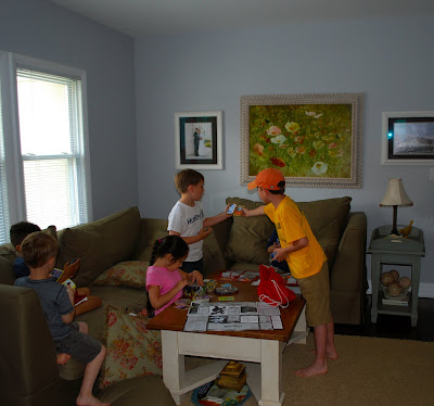 sy had a great birthday this holiday weekend. he invited a few school friends and neighborhood kids to see kung fu panda 2 and then we came back to our house to have cake and ice cream and trade pokemon cards. here are a few pics of the birthday boy and his party...